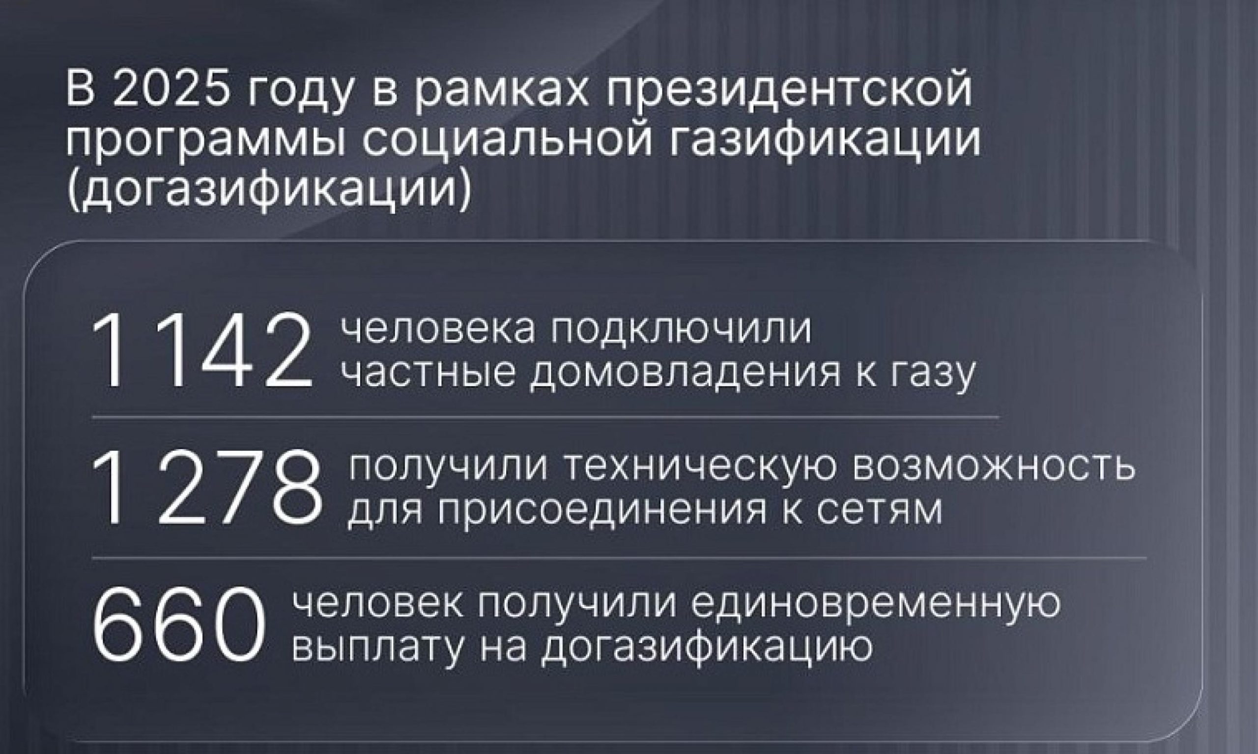 В Архангельской области подвели итоги реализации президентской программы социальной газификации за 2025 год. Как сообщает информационное агентство «Регион 29», в прошлом году 1142 человека начали использовать голубое топливо в быту. Работы по созданию технической возможности для присоединения к газовым