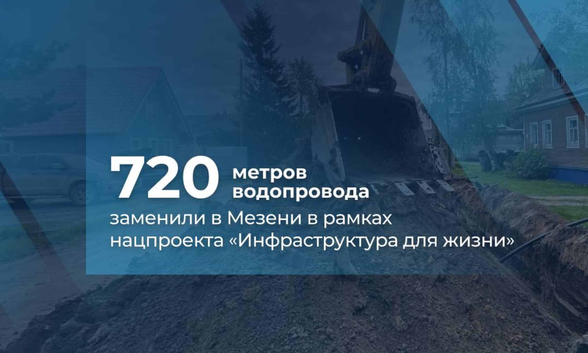 В Мезени завершился капитальный ремонт водопроводной сети в рамках нацпроекта «Инфраструктура для жизни». Общая протяженность нового водопровода составила 720 метров. Основные работы велись вдоль Первомайского проспекта. К обновленному трубопроводу